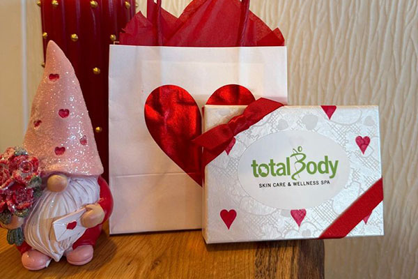 Available at our spa packaged in a pretty heart box and bag (shown), or as an Online E-Gift.
